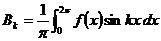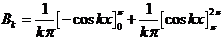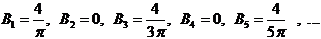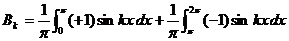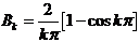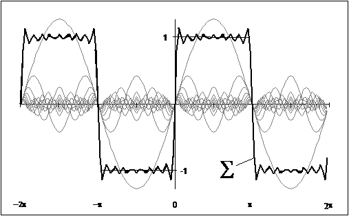 aus harmonischen Einzelkomponenten zusammensetzt. Die Periodendauer der Rechteckwelle ist gleich 2. Da f(x) ungerade ist, ist Ak = 0 für alle k, also sind die Komponenten ebenfalls ungerade. Für Bk gilt:
