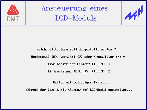 printf("Whrend der Grafik mit <Space> auf LCD-Modul umschalten...");