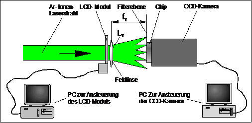 Eine Möglichkeit zur Bilderkennung stellt die optische Verarbeitung mit Hilfe einer Linse, welche eine Fourier-Transformation durchführt, und eines an das Objekt angepaßten Filters dar. Als Eingabedaten des optischen Prozessors wird eine Bildvorlage verwendet, als Ausgabe erscheint ein Korrelationssignal. Durch einfachste elektronische Mittel kann die Intensität dieses Signals detektiert und als Kriterium für die Erkennung des Objektes genutzt werden. Die Verarbeitung der Daten erfolgt dabei parallel und trotz außerordentlich hoher Datenmengen